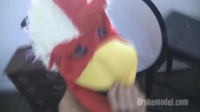 This brunette is dressed like a chicken whilst getting fucked by a guy who will make her feel so horny