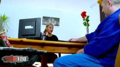 This blonde bitch with huge tits can't wait to be fucked by her boyfriend who wants to make her horny as fuck