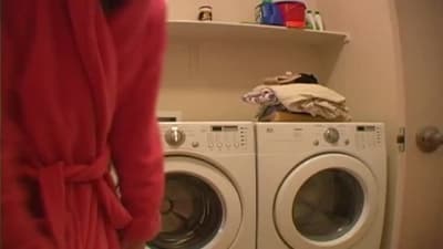This young woman just wants to feel excitement and the only way she can achieve that is by lying on top of the washing machine and caressing
