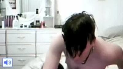 This emo guy has a horny time as he is fucking his midget girlfriend in front of the camera and she makes him cum
