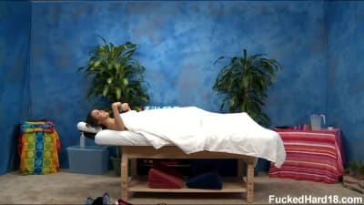 Sexy brunette Dillion came to have a nice massage with oil and enjoy her hot masseuse's dick to have a happy ending