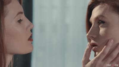 This redhead woman has a lot of fun as she is using her strap-on to fuck her lesbian lover until they both climax