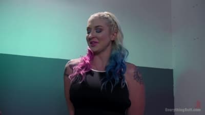 This blonde, gets her ass penetrated by any type of sex object by her lesbian master, who loves extreme sextoys.