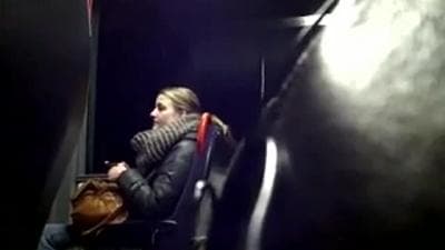 This dirty old man is getting his dick out on the bus and touching himself while recording an unassuming woman sat opposite