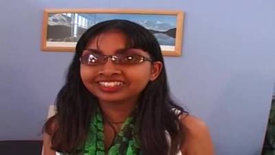 Indonesian brunette with glasses, has a hairy cunt which she shows shyly in front of the camera and lets herself, be persuaded to suck cock in POV.