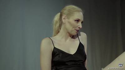 Blonde penetrates her juicy pussy deeply with a sex toy