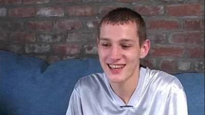 Young Bastien gets naked for his first porn casting and masturbates until cum drips down his belly after ejaculation.