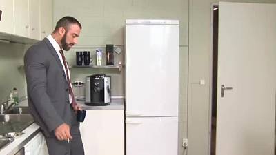 Spencer and Jeff are working from home and they will make the most of it with a fuck in the kitchen and a sticky cum facial