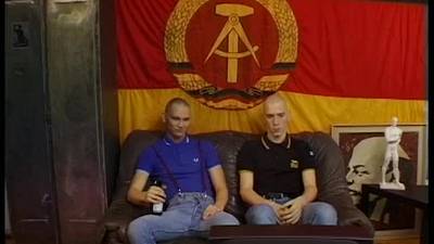 Two young soldiers grabbing their cocks and spitting in their mouths before sucking each other. So exciting!