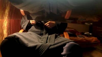 The young man grabs his cock and masturbates under the table. He has his camera on to record his glory moment.