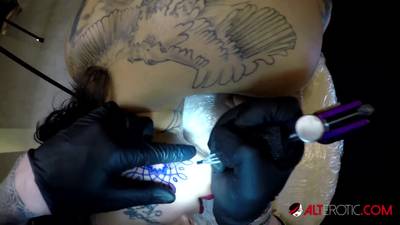Genevieve Sinn fucked while getting a tattoo on her face