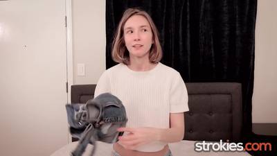 Nerdy and sweet Claire Roos brings her delightfully unusual handjob skills to Strokies, sharing naughty stories of anal sex on camera.