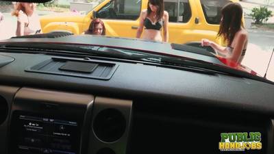Public Handjobs Sexy Wet Fivesome Car Wash