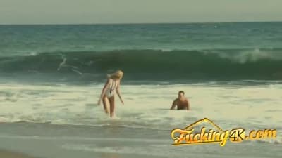 This blonde woman and her boyfriend, came home from the beach horny. She started sucking his cock, before taking it into her pussy, doggystyle.