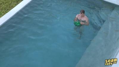 Tattooed Bob, swims a little and strokes his big fat cock all over the kitchen. He cums all over his perfect toned and muscular body and he couldn't be happier!