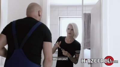 The German blonde Sophie Logan, insatiable wife, gets savagely pounded. She screams with pleasure, her body trembling under her husband's brutal pounding.