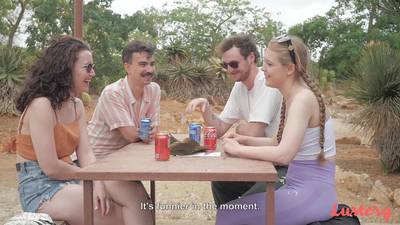 Two couples are vacationing together. A house with a pool, a garden, summer that is to say, ideal conditions for everyone to start fucking