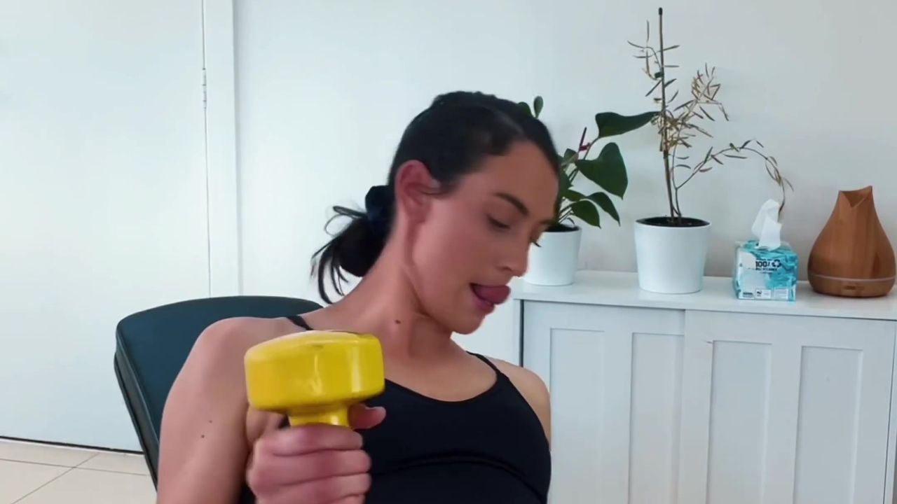 The girl loves to keep her body healthy and that's why she exercises, although she burns more calories by masturbating with her toys.