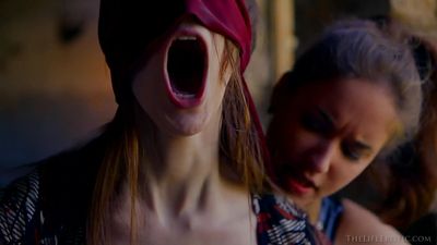 In this abandoned building, these two lesbians Beata Undine and Emily J are having some fun. While blindfolded, she gets her pussy masturbated until she comes