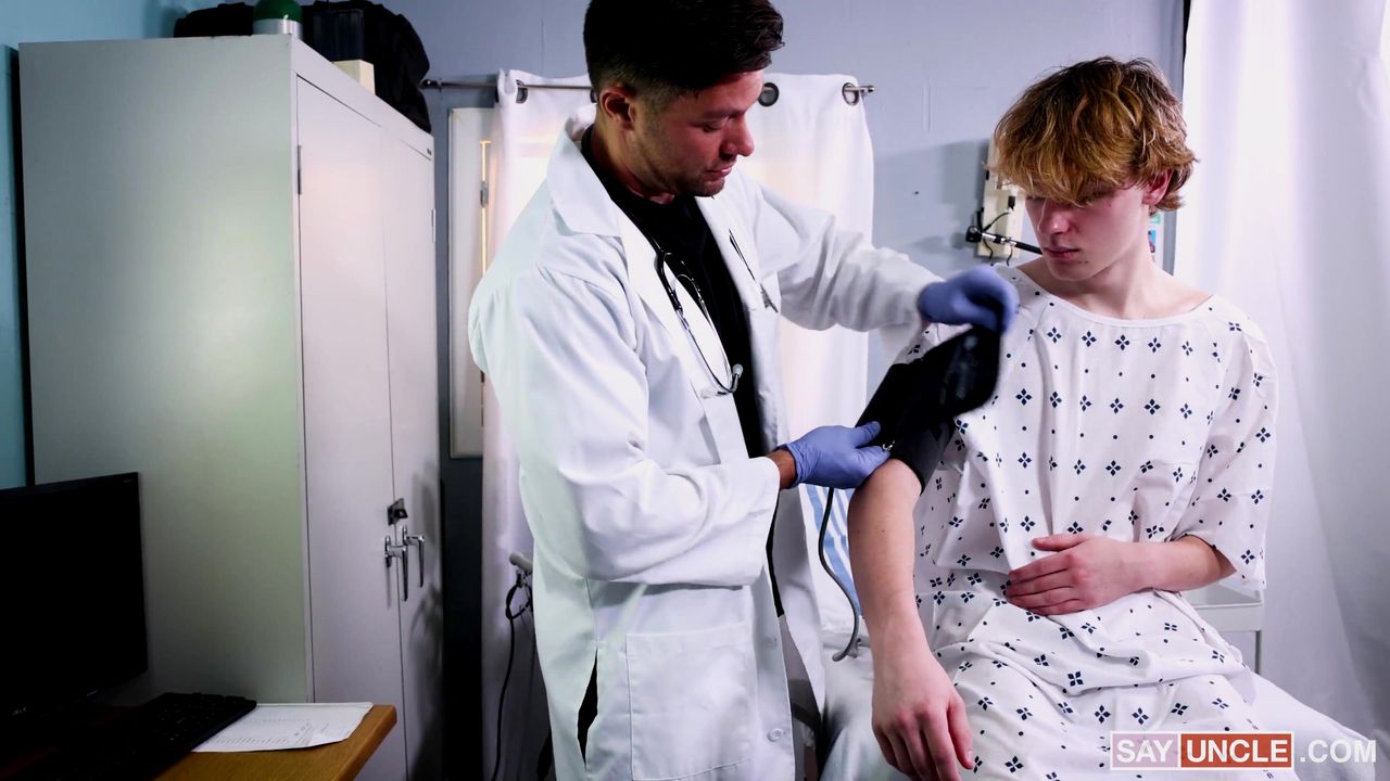This twink teen came to the doctor for some examining. First the doctor starts by measuring his heartbeat then he moves into his ass and he sticks his tongue in