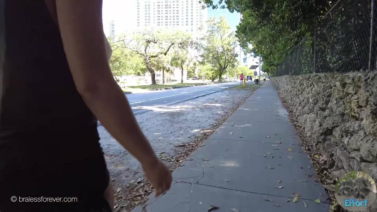 This brunette had the idea to take a nice walk to catch some sun, by exposing her breasts outside her clothes. She loves being seen like that!