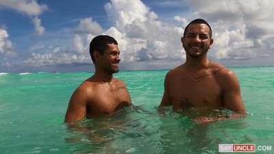 Latinos suck each other's cock after a swim at the beach