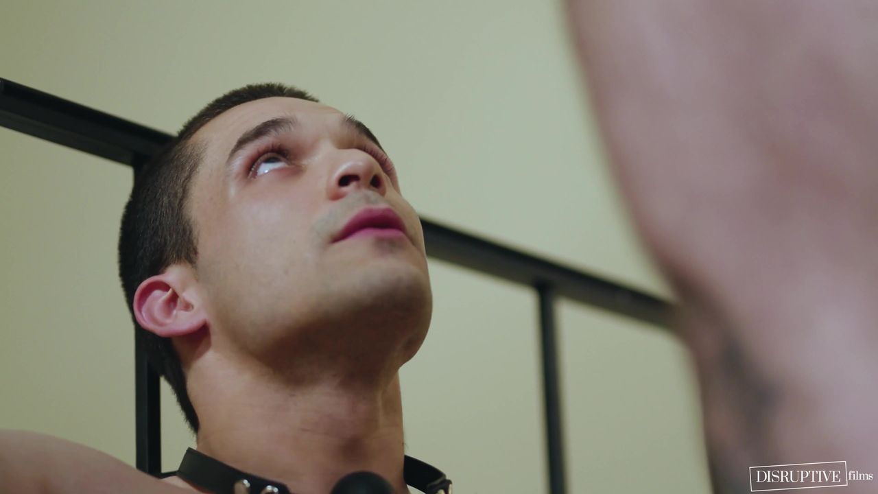 The submissive guy tied up sucks deeply and drools on his sadist's cock, tight ass getting pounded in doggy style by the thick dick in brutal torments.
