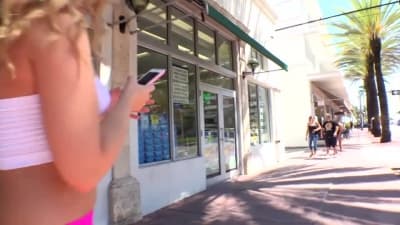 Alexis Texas walks the streets in pink yoga pants before going to the hotel with Jules Jordan for some bareback sex with many positions and orgasms.